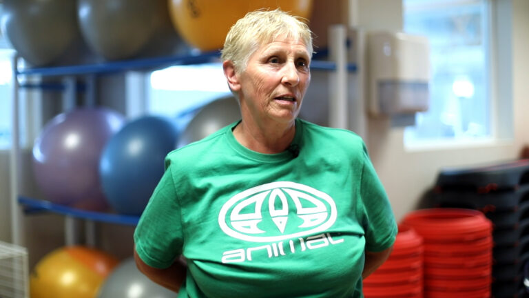 Lady flexing muscles